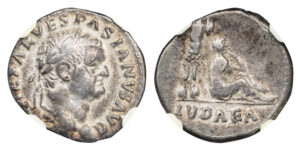 VESPASIAN SILVER DENARIUS – JUDAEA CAPTA ISSUE – CHOICEVF NGC GRADED ROMAN IMPERIAL COIN OF THE 12 CAESARS AND THE JEWISH WARS (Inv. 20261)