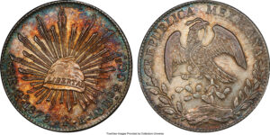 MEXICO REPUBLIC SILVER 8 REALES – 1878 Go FR GUANAJUATO MINT – MS64 PCGS MONSTER TONER WORLD COIN (Inv. 20490)