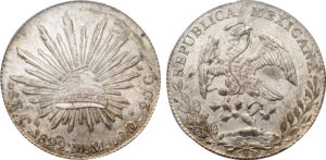 MEXICO REPUBLIC SILVER 8 REALES – 1892 Ca MM CHIHUAHUA MINT – MS64 PCGS WORLD COIN (Inv. 20614)