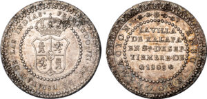 MEXICO FERDINAND VII SILVER PROCLAMATION MEDAL – 1808 PROCLAMATION IN XALAPA ISSUE- CHOICE AU IRIDESCENT HIGHLIGHTS WORLD COIN MEDAL (Inv. 20675)