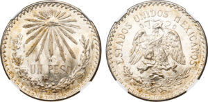 MEXICO ESTADOS UNIDOS SILVER PESO – 1945 M MEXICO CITY ISSUE – MS67 NGC WORLD COIN (Inv. 20756)