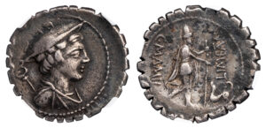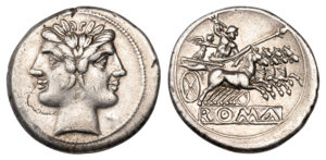 ANONYMOUS SILVER QUADRIGATUS – JANUS AND JUPITER ISSUE – CHOICE VF ROMAN REPUBLICAN COIN (Inv. 21029)