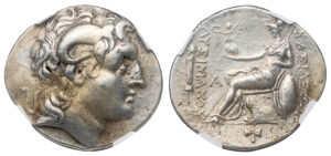 EUMENES III / ARISTONICUS SILVER CISTOPHORUS – YEAR 3 (132/31 BC) ISSUE FROM APOLLONIS – BEST GRADED MINT STATE NGC GRADED GREEK PERGAMENE KINGDOM COIN (Inv. 20359)