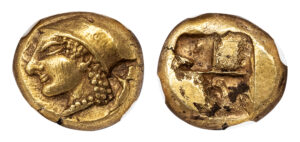 PHOCAEA ELECTRUM HECTE – DESIRABLE ARCHAIC ATHENA HEAD TYPE – AU NGC GRADED GREEK IONIA COIN (Inv. 20536)