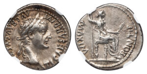 TIBERIUS SILVER DENARIUS – FAMED TRIBUTE PENNY OF THE BIBLE – CHOICE XF NGC GRADED ROMAN IMPERIAL COIN OF THE 12 CAESARS (Inv. 21115)