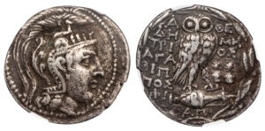 ATHENS NEW STYLE SILVER TETRADRACHM – VERY RARE VARIETY OF YEAR 98/7 BC – VF NGC GRADED GREEK ATTICA COIN (Inv. 21089)