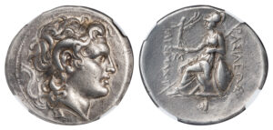 LYSIMACHUS SILVER TETRADRACHM – A SELDOM SEEN VARIETY FROM THE MINT OF LYSIMACHIA – CHOICE VF NGC GRADED GREEK THRACE COIN (Inv. 20141)