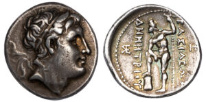 DEMETRIUS POLIORCETES SILVER TETRADRACHM – EX HARTWIG COLLECTION SOLD IN 1910 AND TWICE PUBLISHED – VF NGC GRADED GREEK MACEDONIAN KINGDOM PROVENANCED AND PLATE COIN (Inv. 20989)
