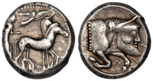 GELA SILVER TETRADRACHM – EX RANDAZZO HOARD – VF GREEK SICILY PROVENANCED AND PUBLISHED COIN (Inv. 21040)