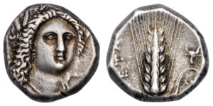 METAPONTUM SILVER STATER – FACING HEAD TYPE EX RATTO SALE OF 1926 – GOOD VF GREEK LUCANIA PROVENANCED COIN (Inv. 21166)