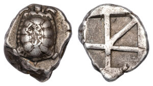 AEGINA SILVER STATER – LAND TORTOISE TYPE WITH MULTIPLE COUNTERMARKS – XF NGC GRADED GREEK COIN (Inv. 20991)