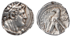 TYRE SILVER SHEKEL – 90/89 BC ISSUE – CHOICE AU NGC GRADED GREEK PHOENICIA BIBLICAL COIN (Inv. 20921)