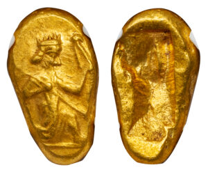 ACHAEMENID GOLD DARIC – UNUSUAL ELONGATED PLANCHET SPECIMEN – XF NGC GRADED EASTERN GREEK COIN (Inv. 20833)