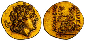 LYSIMACHUS GOLD STATER FROM BYZANTIUM – EX TOOAPSE HOARD OF 1908 AND PEDIGREED BACK TO THE HESS SALE OF 1918 – CHOICE AU NGC GRADED GREEK THRACE COIN (Inv. 20533)