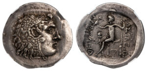 LYSIMACHUS SILVER TETRADRACHM OF BYZANTIUM – EX GUADAN AND CLARENCE BEMENT COLLECTIONS AND PUBLISHED BY MARINESCU AND CALLATAY – CHOICE XF NGC GRADED GREEK THRACE COIN (Inv. 20173)