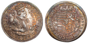 LEOPOLD V SILVER TALER – 1627 HALL MINT ISSUE – CHOICE XF WORLD AUSTRIA COIN (Inv. 20889)