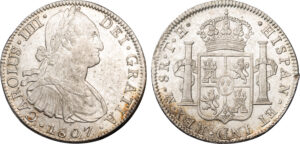 MEXICO CHARLES IV SILVER 8 REALES – 1807 Mo TH MEXICO CITY MINT – AU WORLD COIN (Inv. 20630)