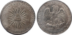 MEXICO REPUBLIC SILVER PESO – 1914 DURANGO MINT “MUERA HUERTA” REVOLUTIONARY ISSUE – MS62 PCGS WORLD COIN (Inv. 20768)