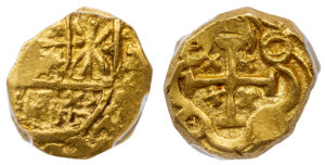 CHARLES II GOLD COB ESCUDO – SCARCE MINT OF BOGOTA ISSUE OF ASSAYER ARCE – MS62 PCGS GRADED COLUMBIA SPANISH COLONIAL COIN (Inv. 20754)
