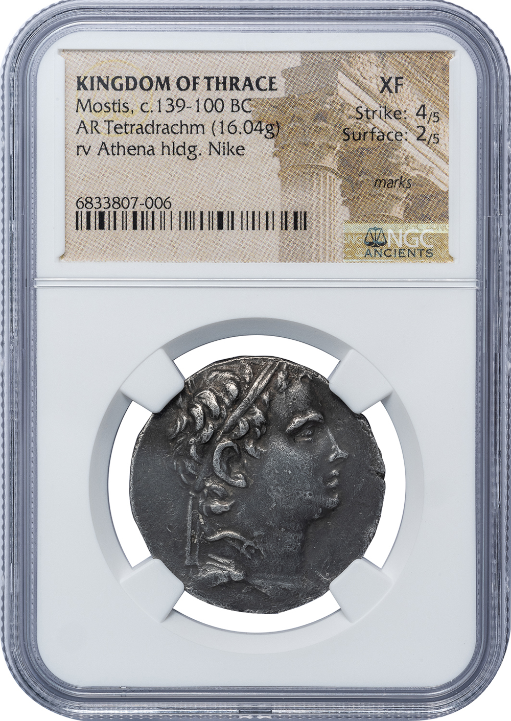 MOSTIS SILVER TETRADRACHM – ISSUE OF YEAR 35 OF RARE RULER – XF NGC GRADED GREEK THRACE COIN (Inv. 19304)