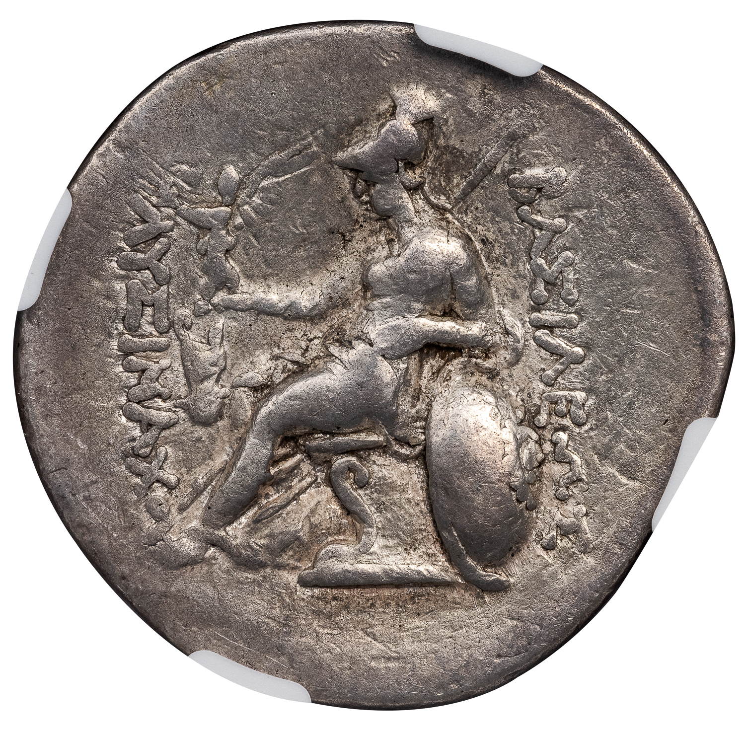 NGC graded XF, Strike 4/5, Surface 2/5, “marks,” a rare emission of an elusive Thracian king, this variety features an unusual rendering of the name of magistrate Sadalos as Sadlaos.