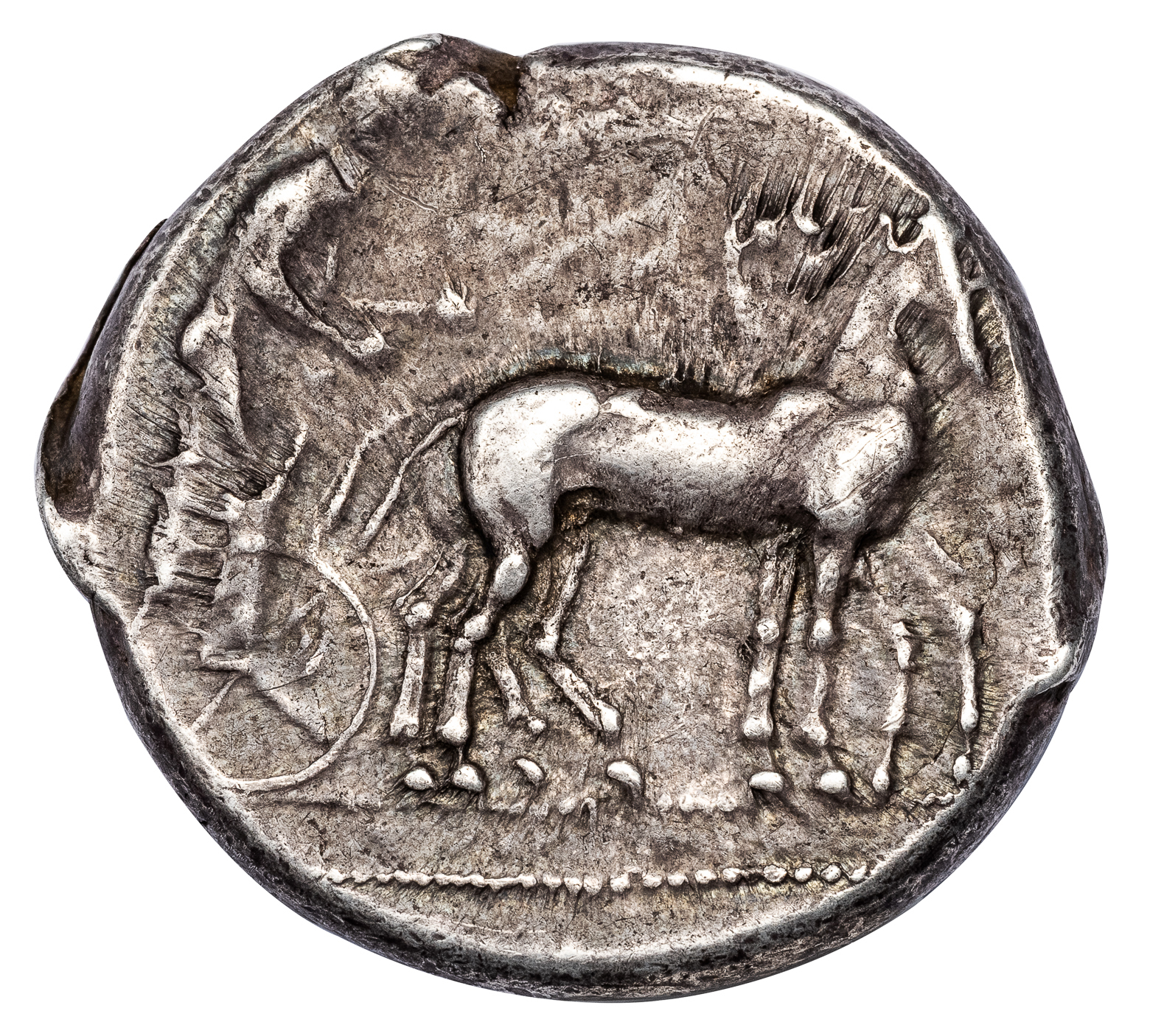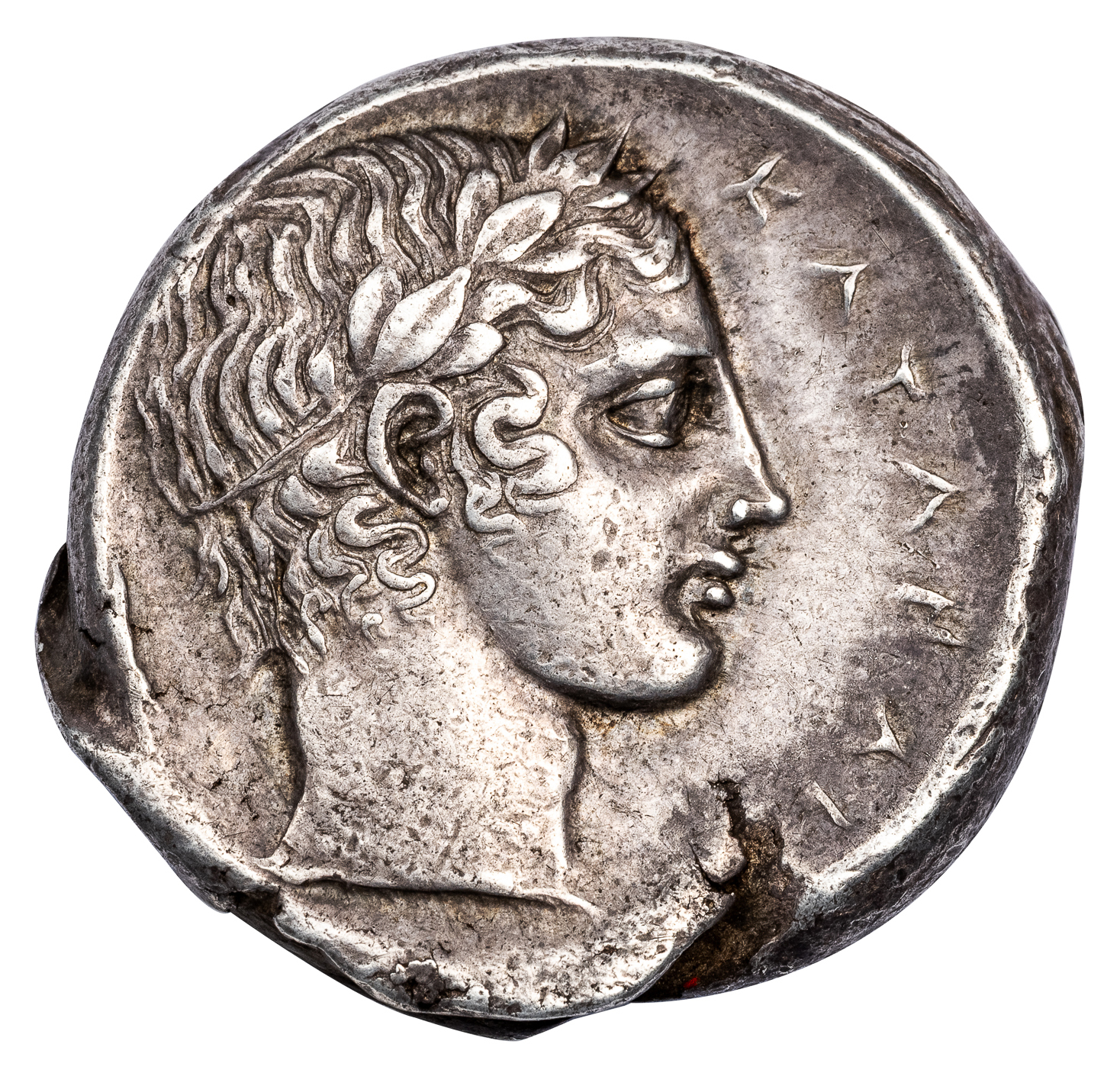 Obv. Charioteer driving biga right, Nike flying above right, crowning horses. Rev. KATANAI[OΣ], laureate head of Apollo to right.