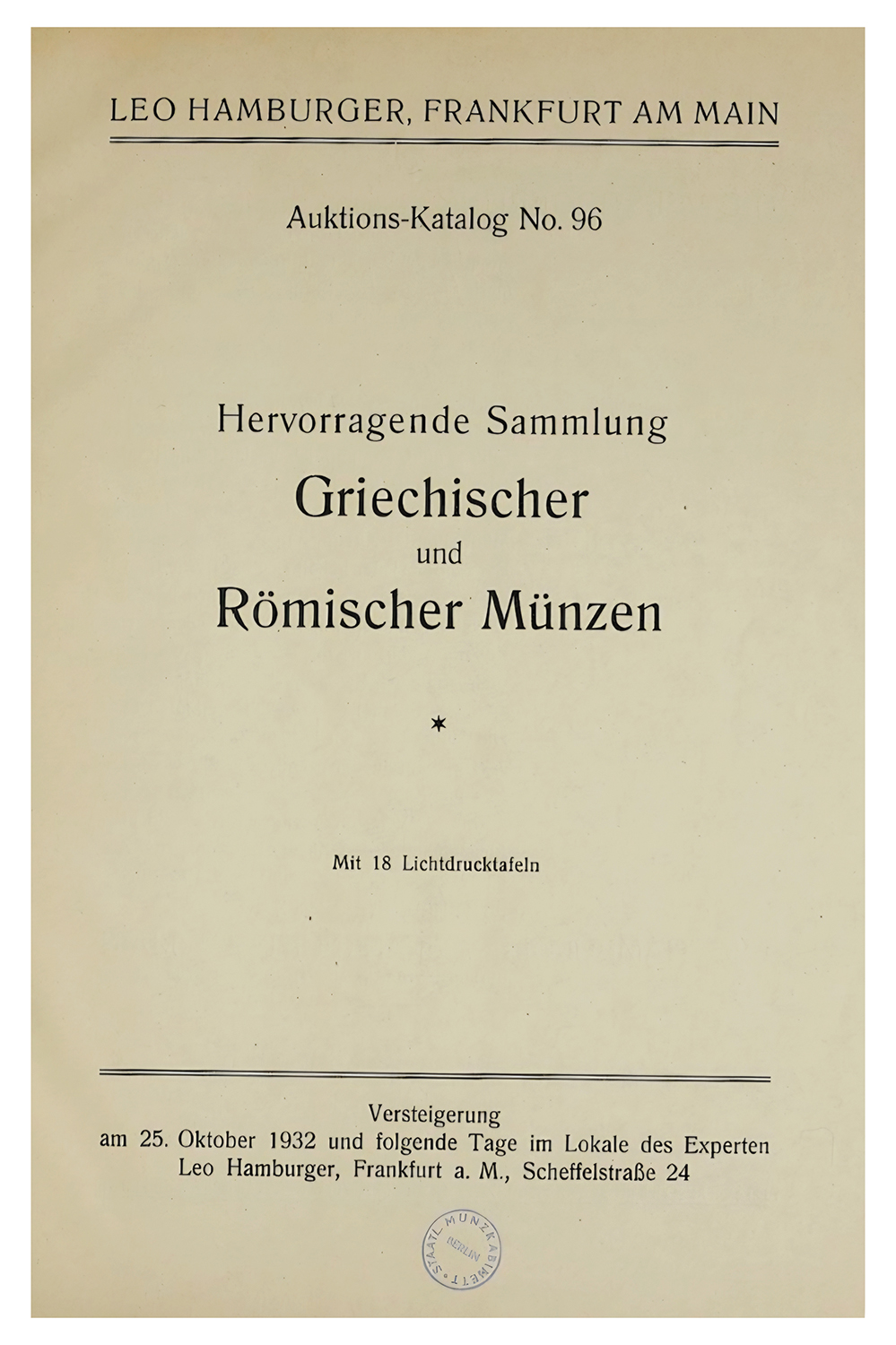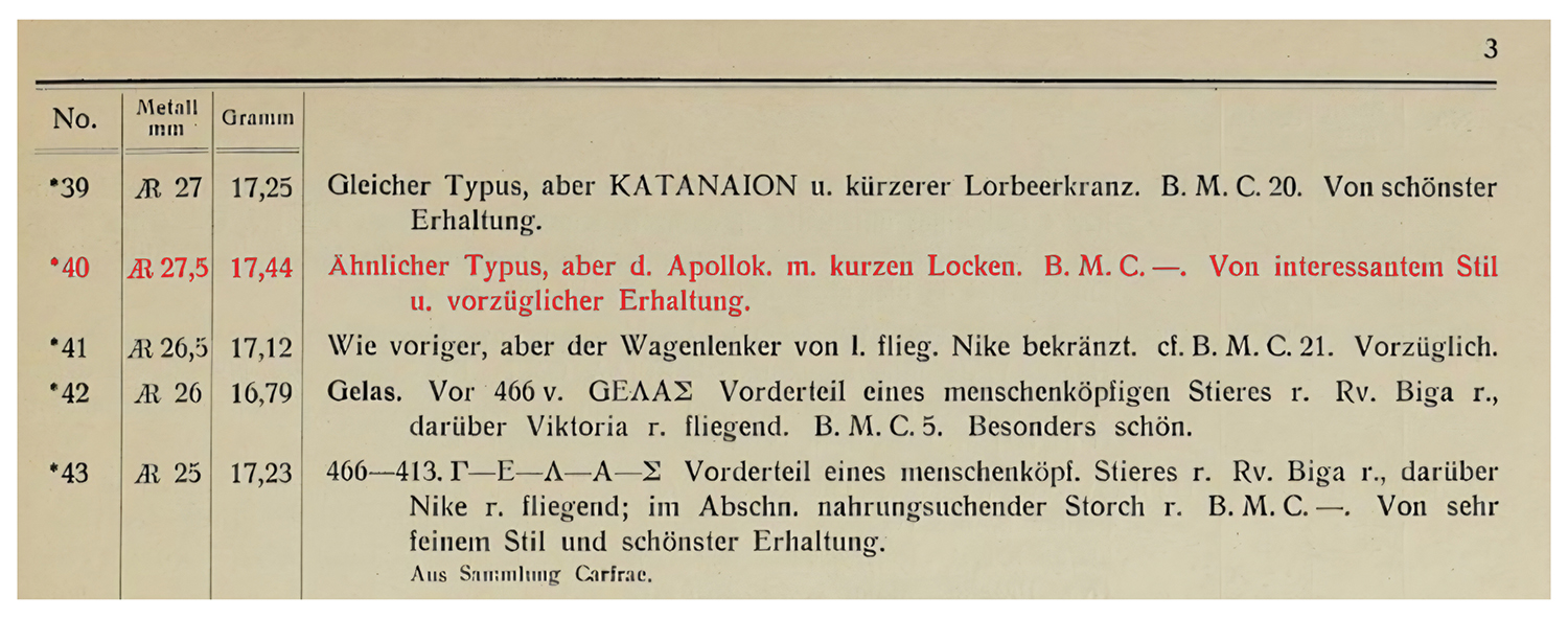 Ex Charles Gillet Collection, no. 385 = Leu 81, 5/16/2001, lot 66 = Leo Hamburger (Frankfurt) Auction 96, 10/25/1932, lot 40.