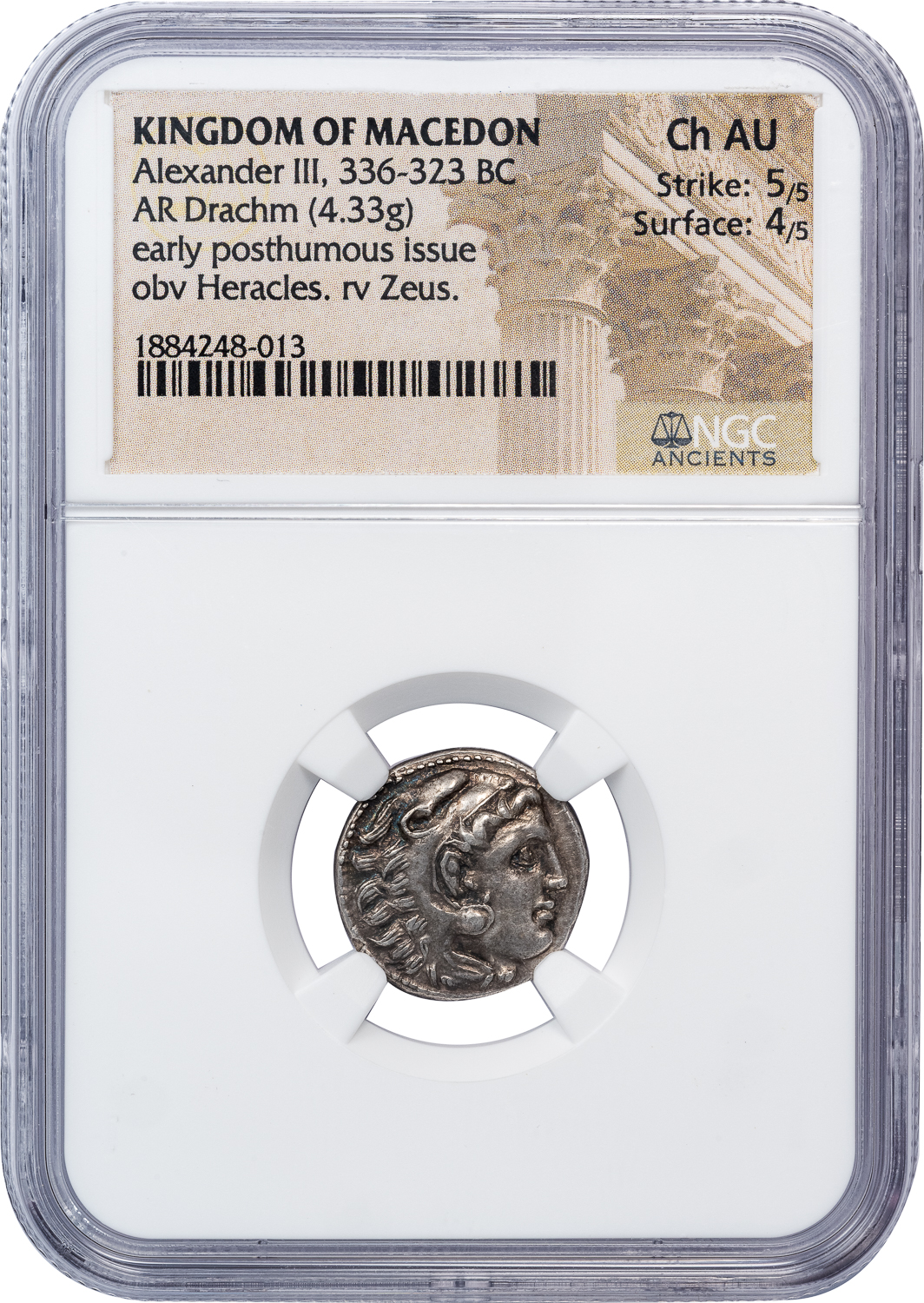 ALEXANDER THE GREAT SILVER DRACHM – POSTHUMOUS ISSUE OF MAGNESIA – CHOICE AU NGC GRADED GREEK MACEDONIAN COIN (Inv. 21007)