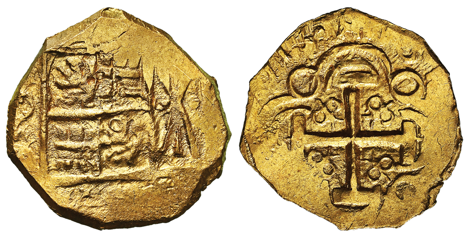 COLOMBIA GOLD COB 2 ESCUDO – 1713 DATE ISSUE EX 1715 FLEET – MS64 SHIPWRECK CERTIFICATION NGC GRADED WORLD COIN (Inv. 21014)