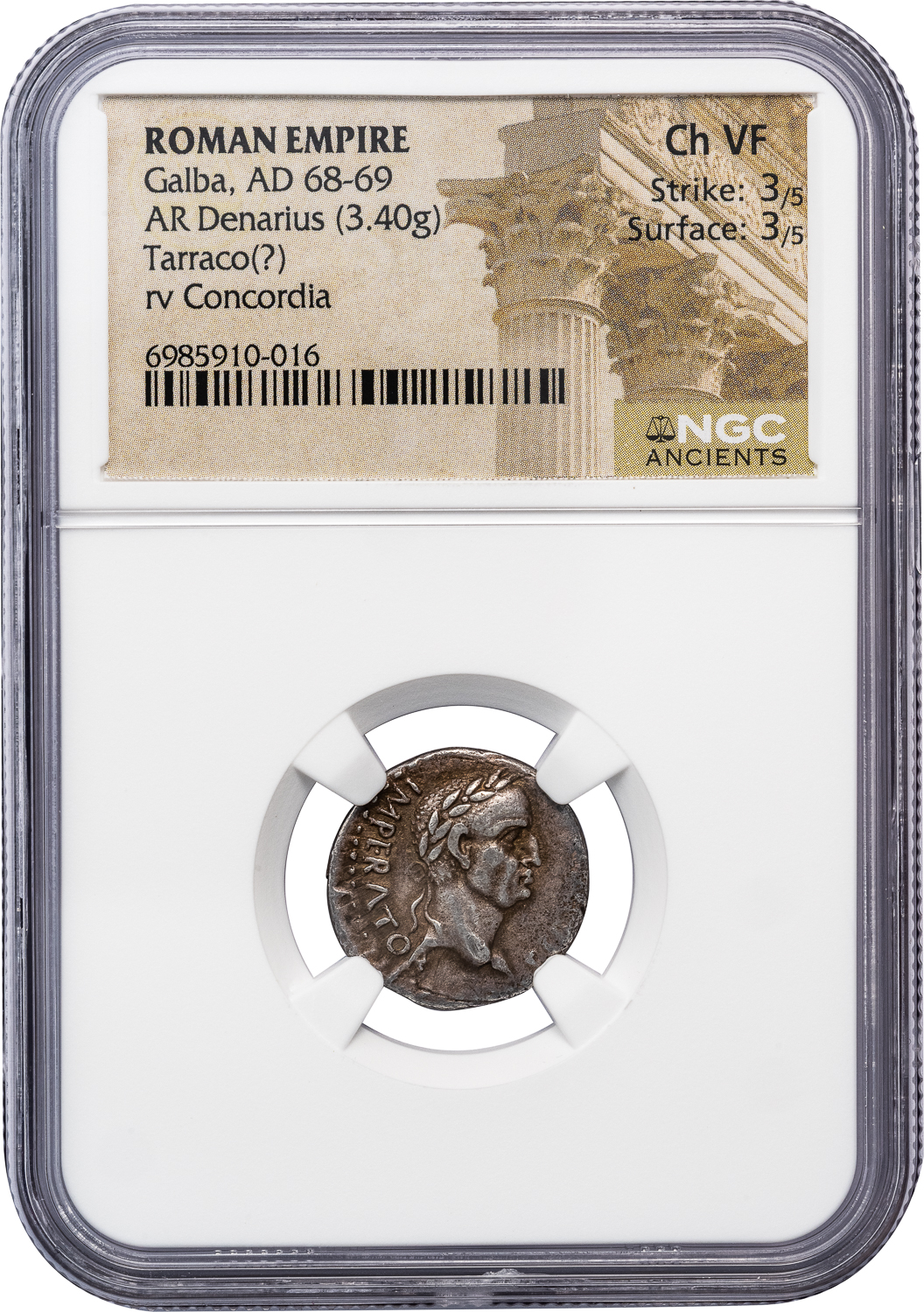 GALBA SILVER DENARIUS – CONCORDIA PROVINCIARUM ISSUE – CHOICE VF NGC GRADED ROMAN IMPERIAL COIN OF THE 12 CAESARS (Inv. 21022)