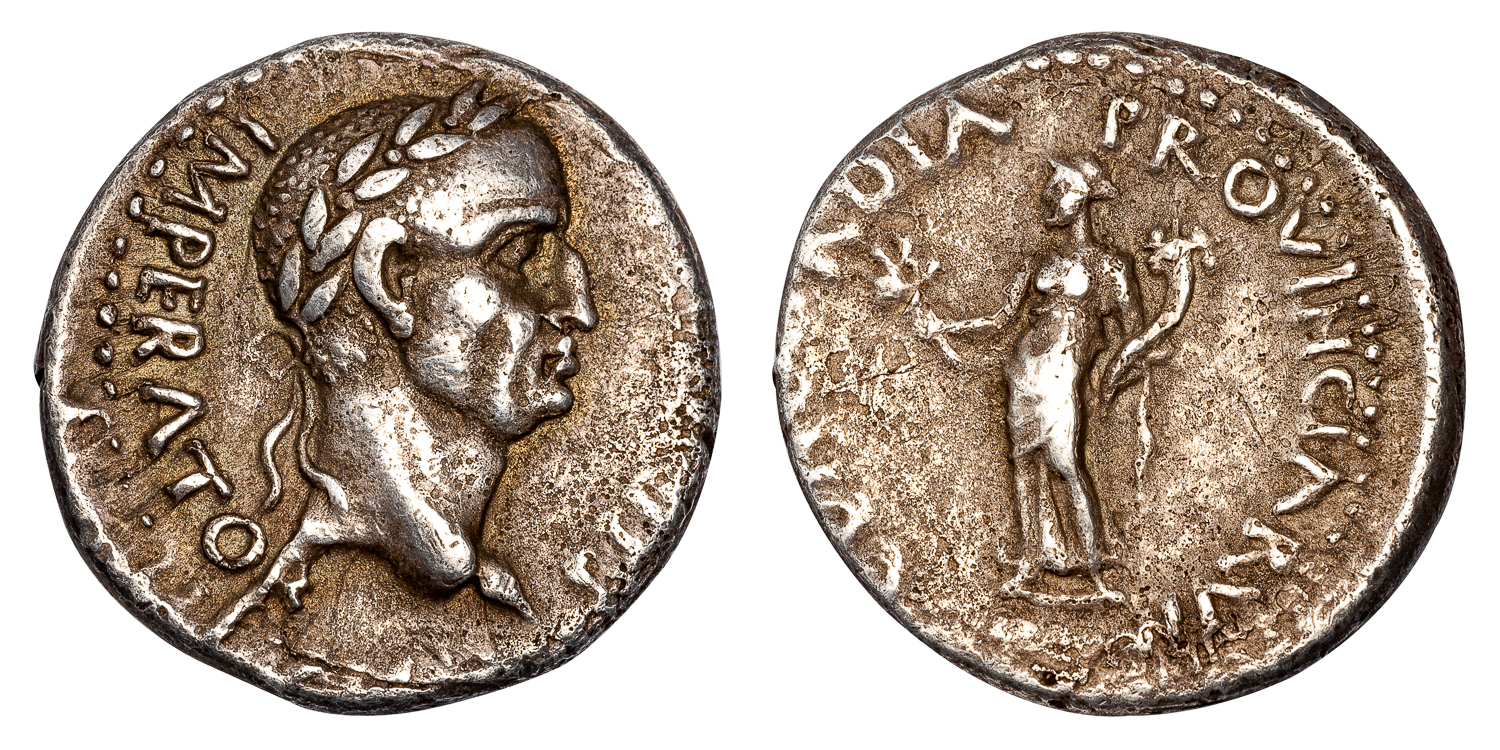 Obv. SER GALBA IMPERATOR, laureate head of Galba right. Rev. CONCORDIA PROVINCIARVM, Concordia, standing left, holding branch and cornucopia.