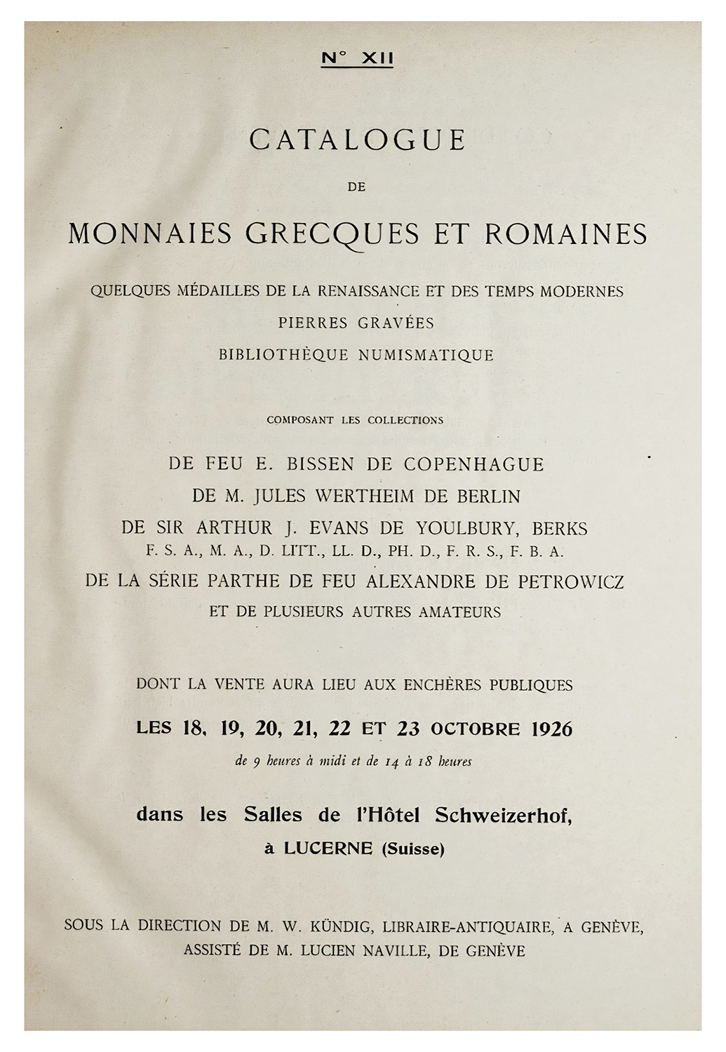 Ex Naville Ars Classica XII (Collections of Bissen, Wertheim, Sir Arthur Evans and others), 10/18/1926, lot 1948.