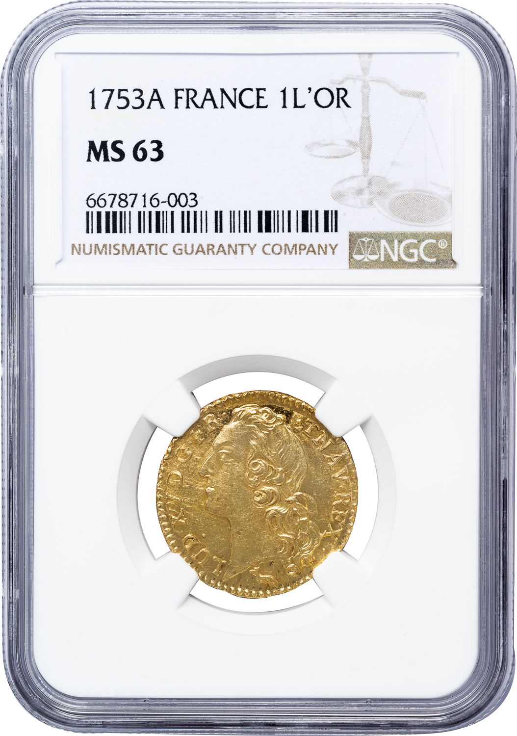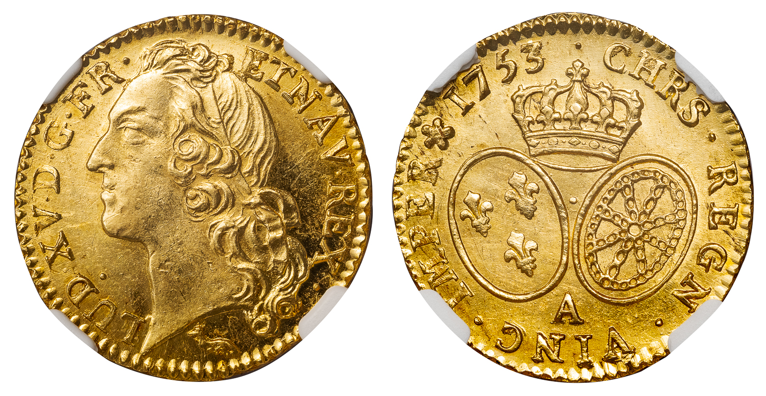 FRANCE LOUIS XV GOLD LOUIS D’OR 1753A – NGC MS 63 WORLD COIN (Inv. 21073)