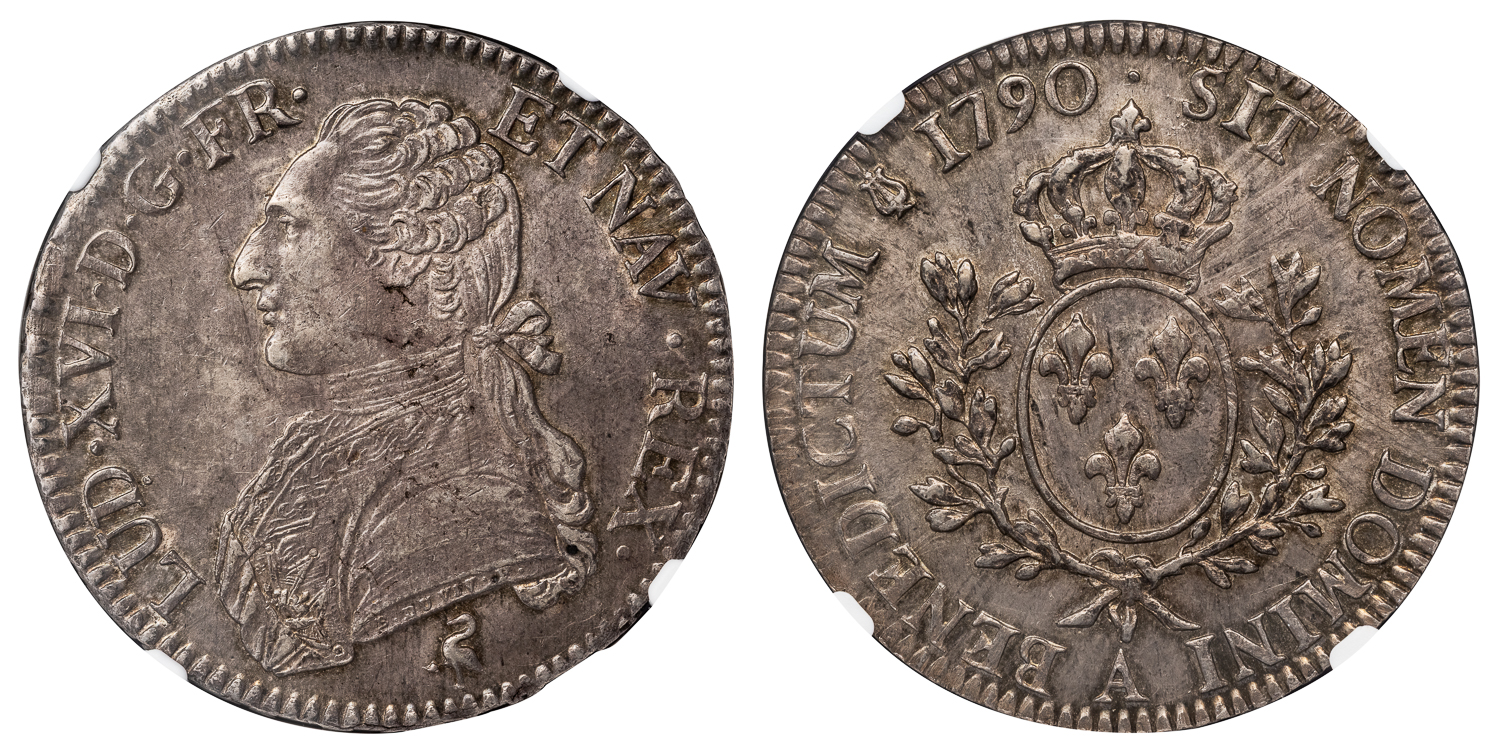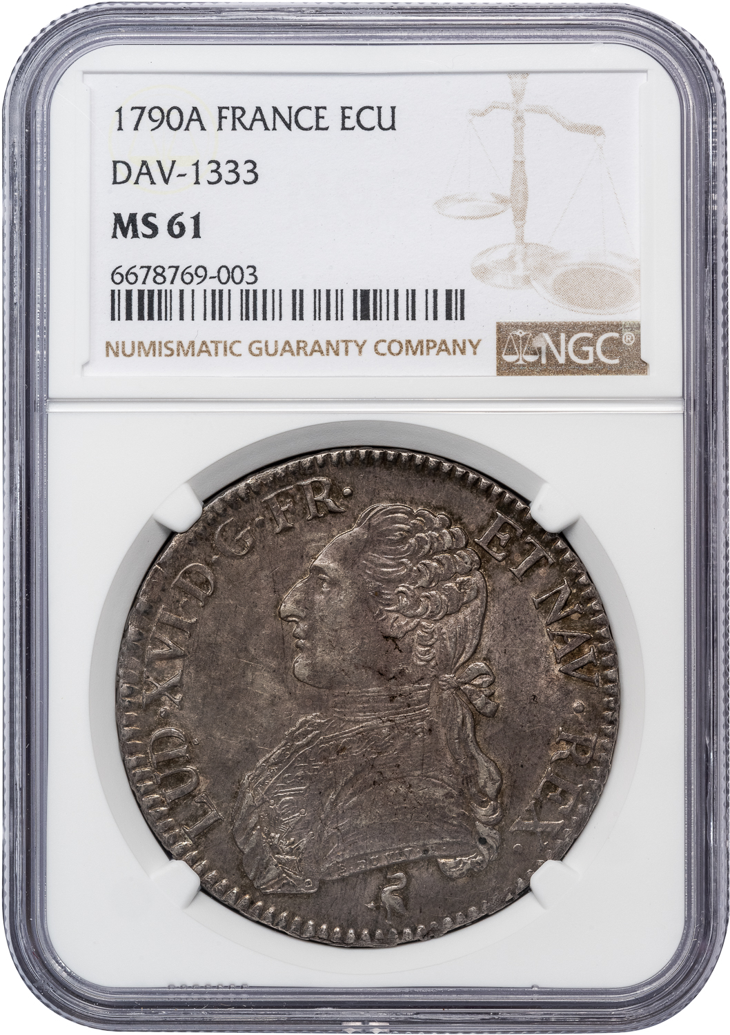 LOUIS XVI SILVER ECU – 1790A ISSUE OF PARIS – MS 61 NGC GRADED WORLD FRANCE COIN (Inv. 21077)