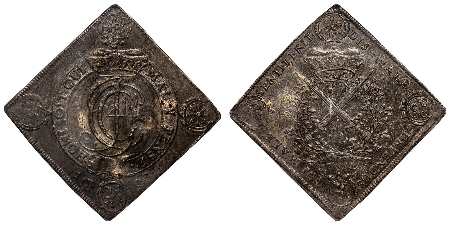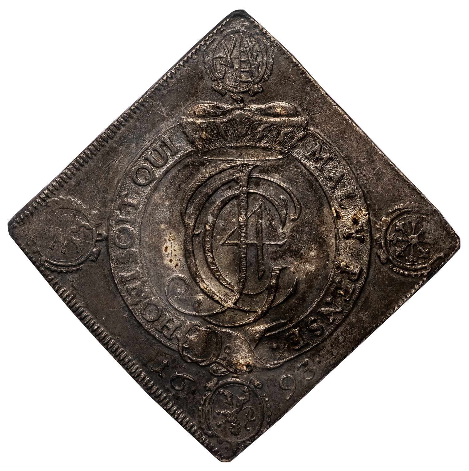 Silver Taler Klippe, 1693, 40x40mm, Dresden mint.