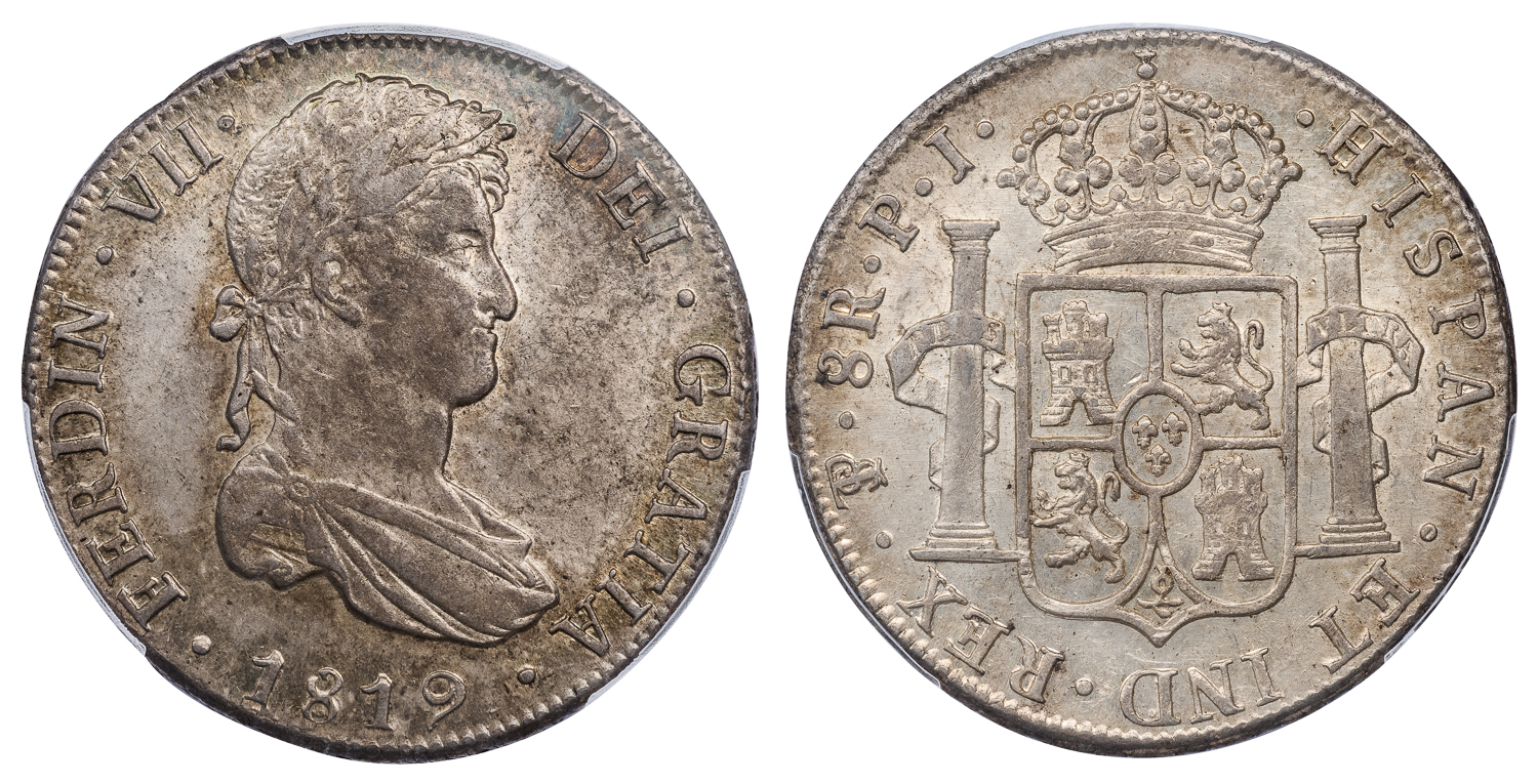 BOLIVIA FERDINAND VII SILVER 8 REALES 1819 – PCGS AU 58 WORLD COIN (Inv. 21118)