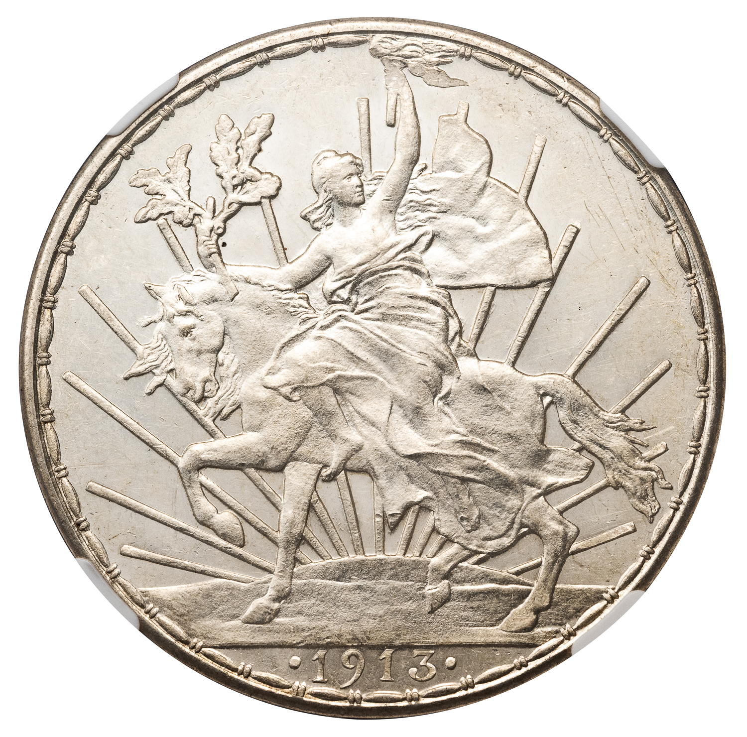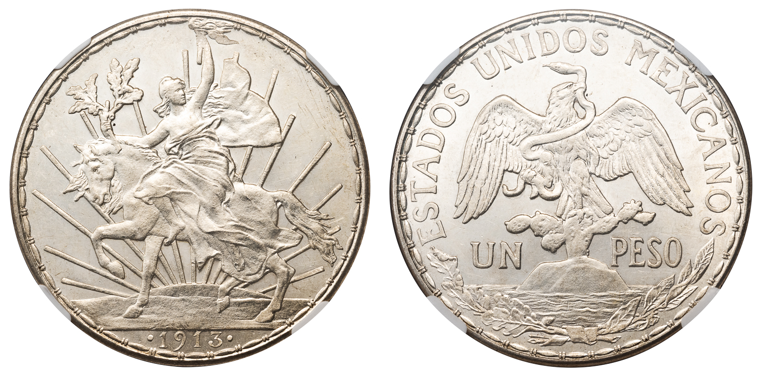 MEXICO ESTADOES UNIDOES SILVER PESO OF CABALLITO TYPE 1913 – NGC MS 63 = WORLD COIN (Inv. 21124)