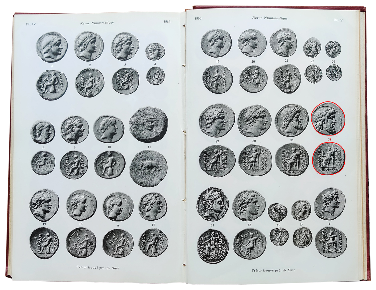 SC 1399; Le Rider, Antioche, Series IIIA, 262 (A27/P181) = Houghton & Le Rider, “Un trésor de monnaies hellénistiques trouvé près de Suse,” RN 1966, 32 (this coin); Mørkholm Series III, 14, dies A25/P– (unlisted rev. die); HGC 9, 620a.