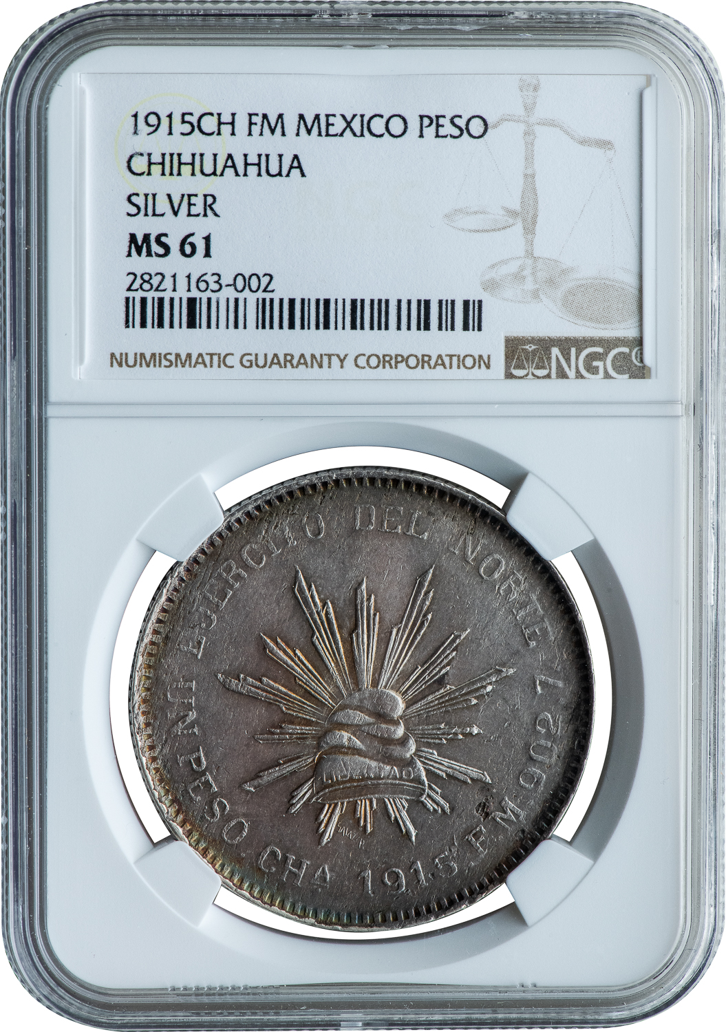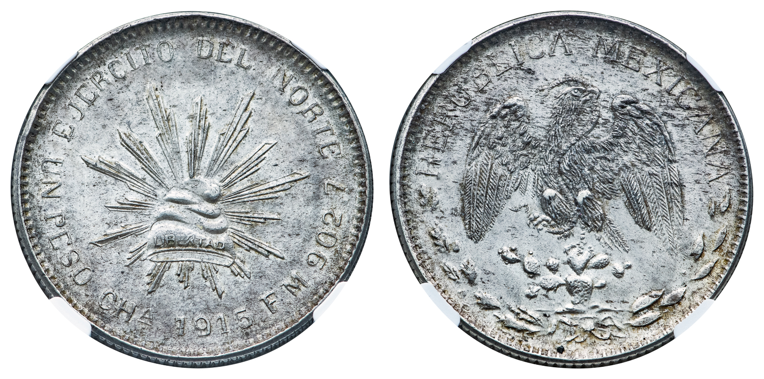 MEXICO REVOLUTIONARY “ARMY OF THE NORTH” ISSUE – 1915 CH FM – MS63 NGC GRADED WORLD COIN (Inv. 21159)