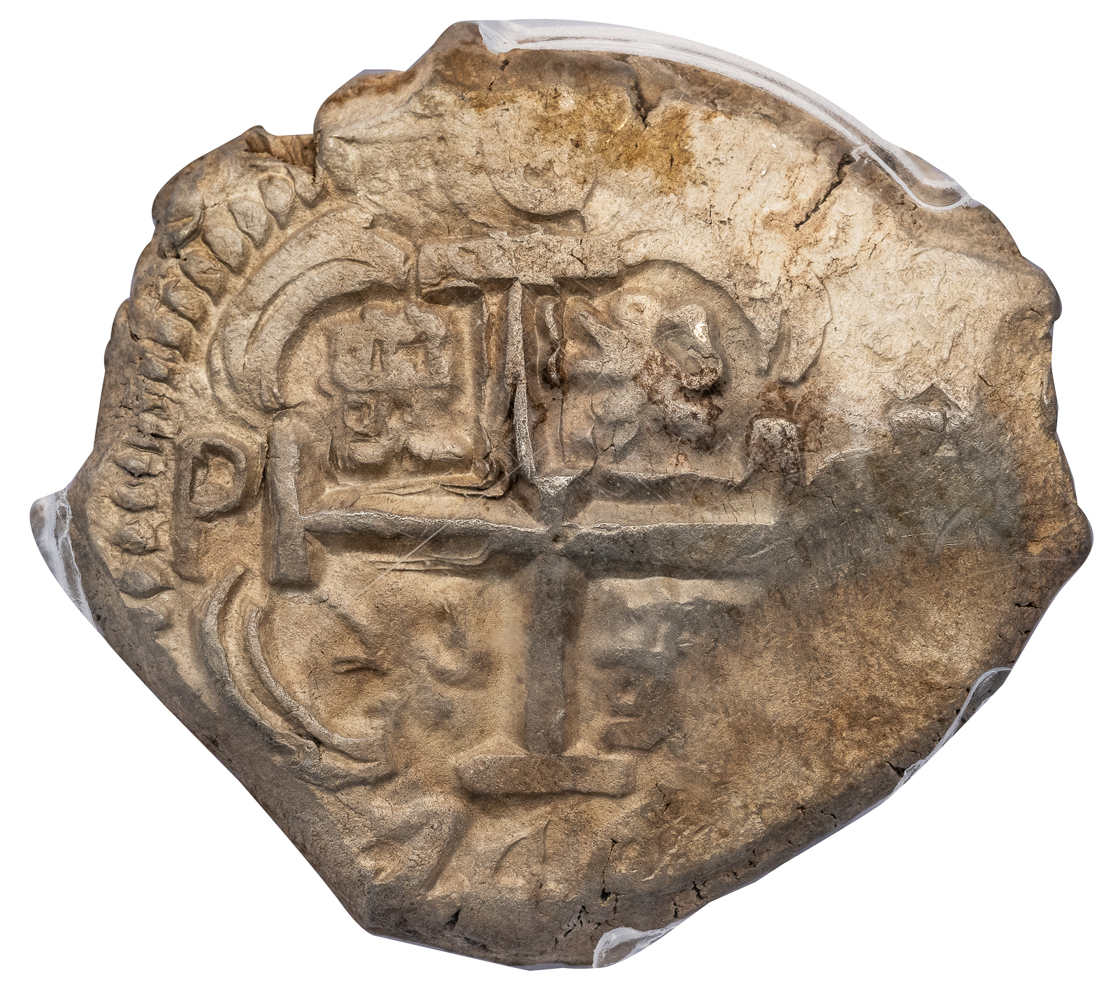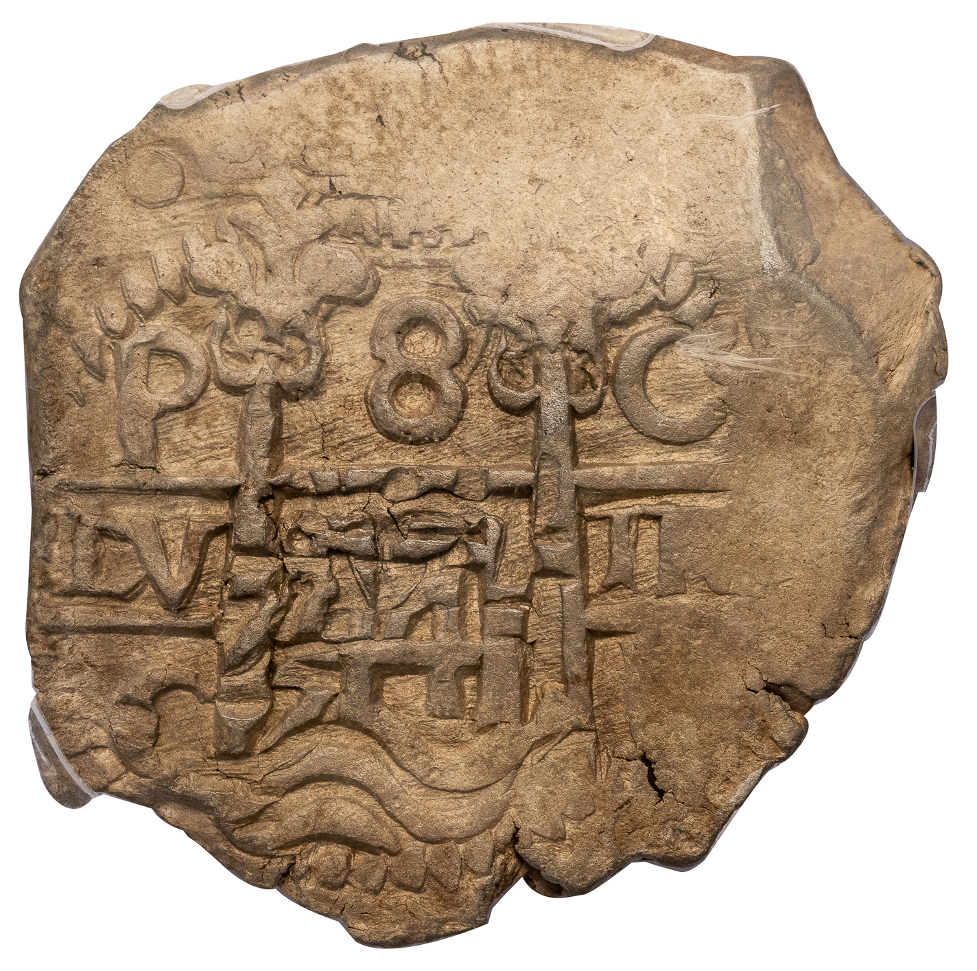 PCGS AU 53, full date, most of pillars and PLVS VLTRA, cross complete.