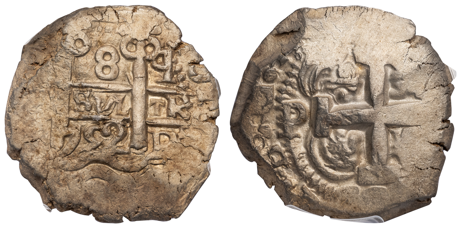 Silver Cob 8 Reales, 1752–P q, 26.95 g, 33 mm. Potosi Mint.