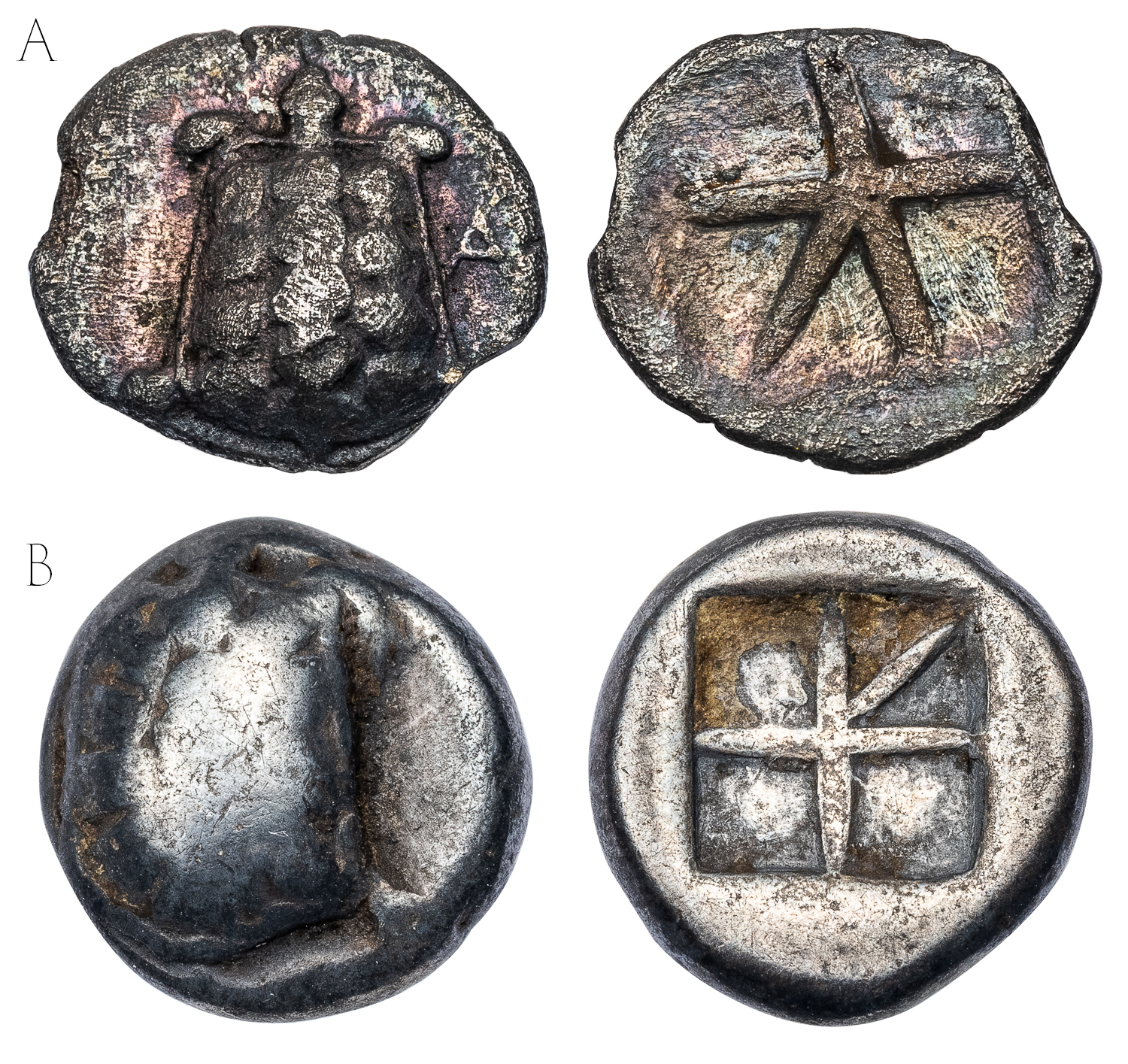 AEGINA SILVER FRACTIONS – PAIR OF TORTOISE ISSUES EX JOHN QUINCY ADAMS COLLECTION – GREEK COINS (Inv. 20821)