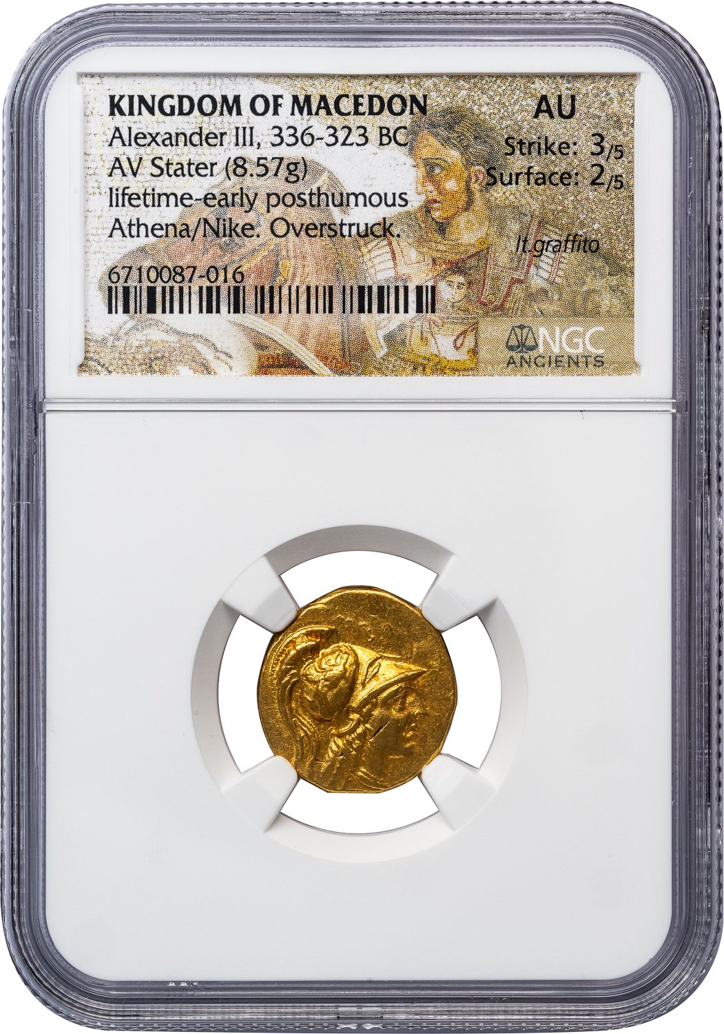 ALEXANDER THE GREAT GOLD STATER – PREVISOULY UNKNOWN OVERSTRIKE ON PERSIAN DARIC FROM BATTLE BOOTY – AU NGC GRADED GREEK MACEDONIAN KINGDOM COIN (inv. 21220)