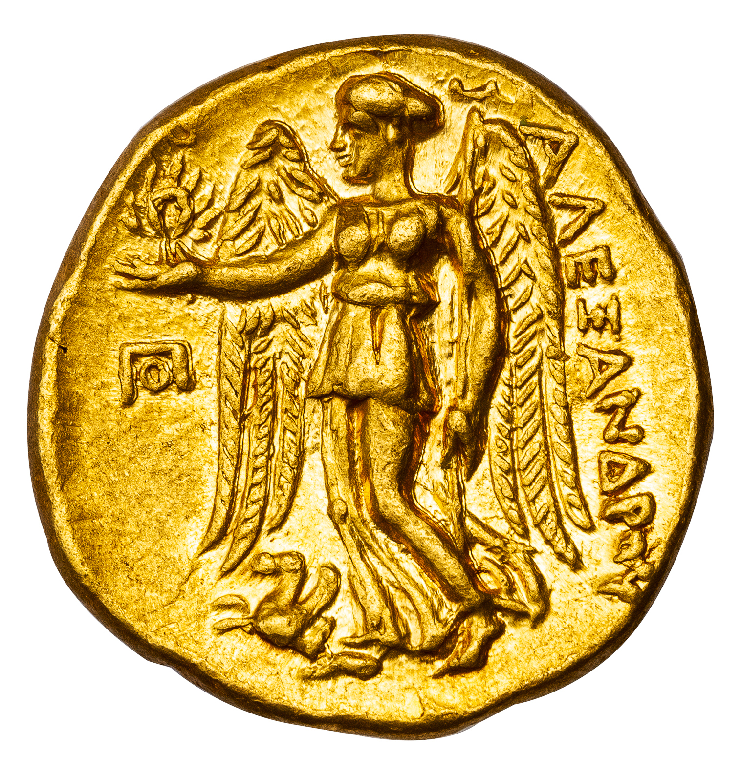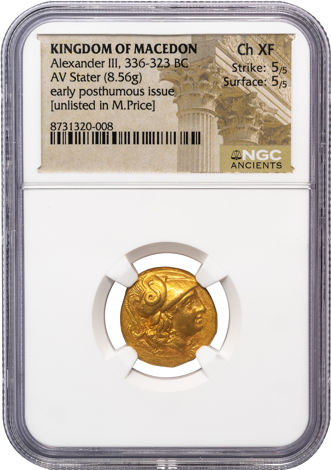 ALEXANDER THE GREAT GOLD STATER – UNIQUE AND UNLISTED IN PRICE ISSUE OF LAMPSACUS – CHOICE XF NGC GRADED GREEK MACEDONIAN KINGDOM COIN (Inv. 20993)