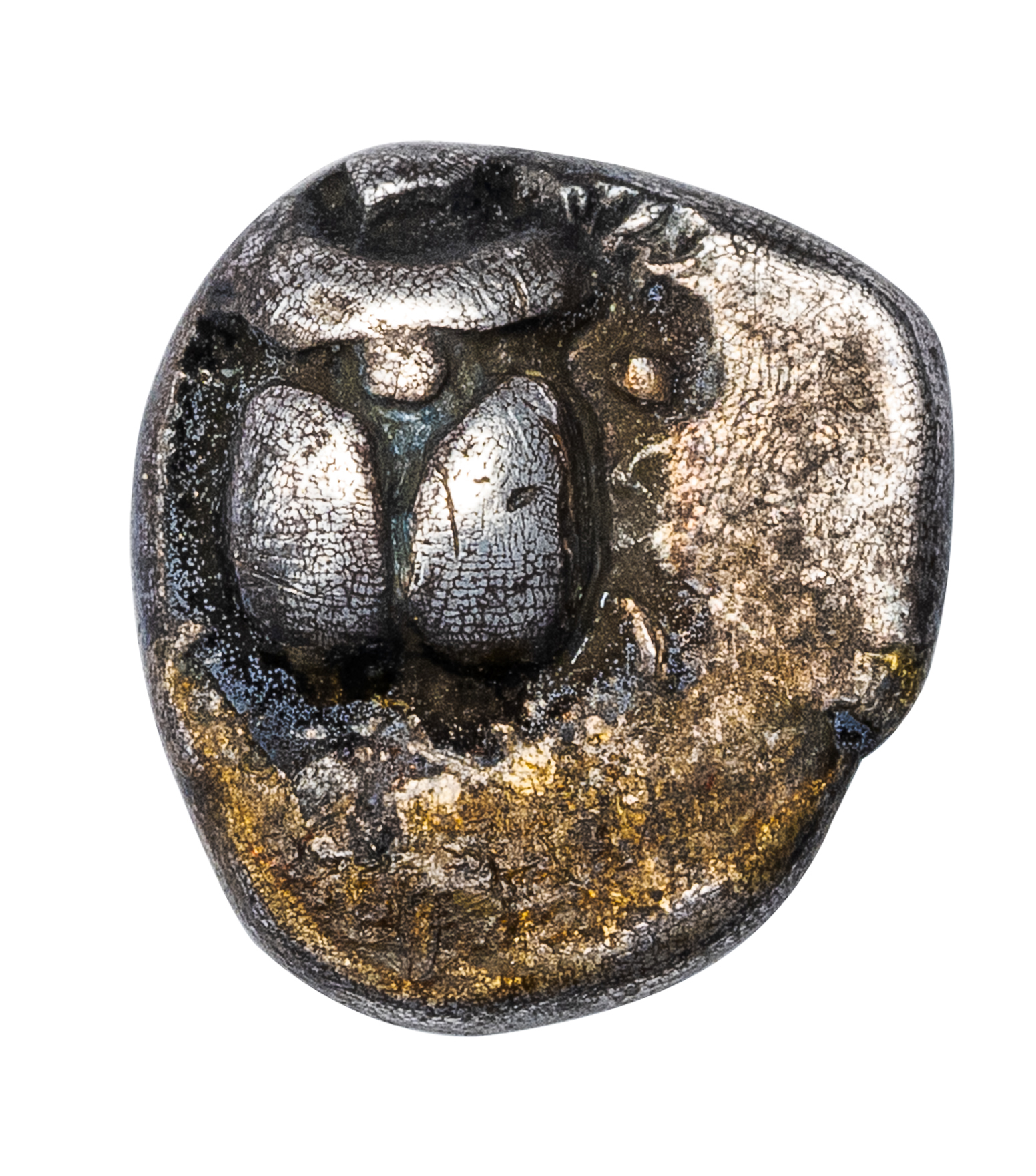 The use of the scarab beetle as a type reflects the northwestern movement of Egyptian iconography through trade. Scarab beetles had previously appeared on electrum fractions struck at an uncertain Ionian mint in the first half of the sixth century BC.