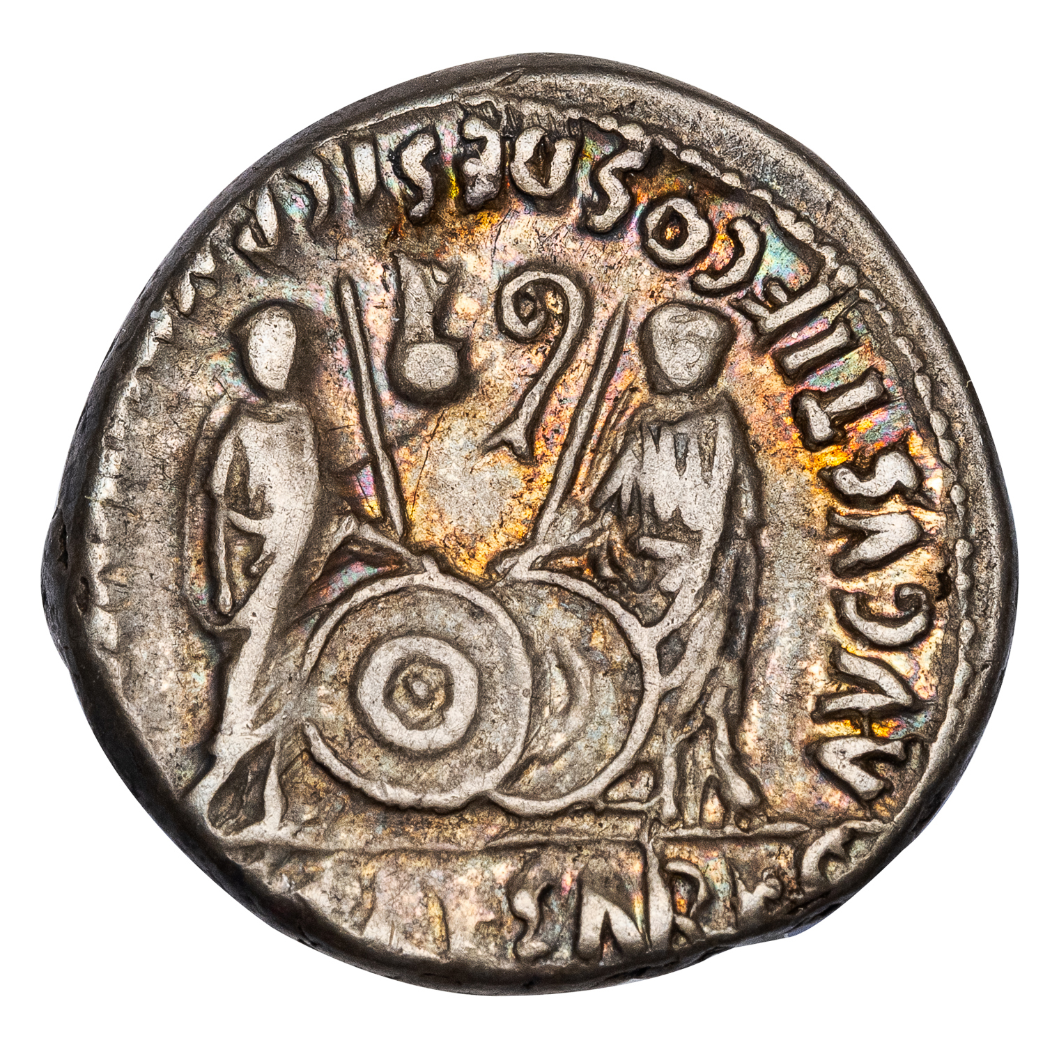 Good VF, dark gray toning with iridescent highlights.