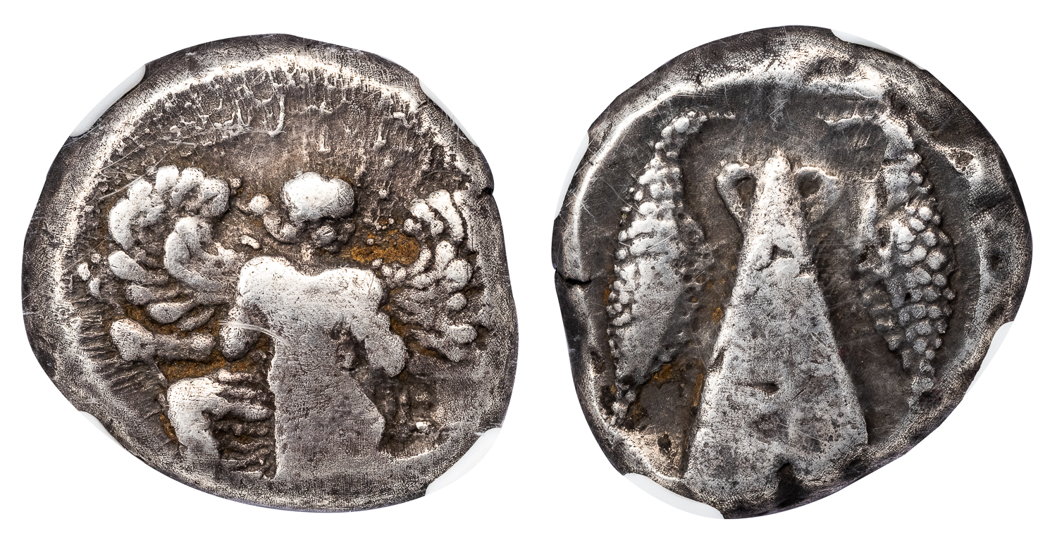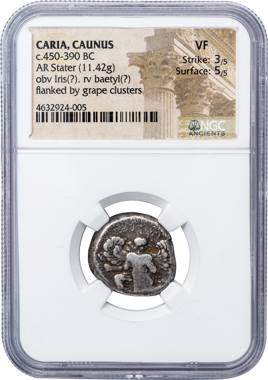CAUNUS SILVER STATER – EARLY WINGED FEMALE TYPE – VF NGC GRADED GREEK CARIA COIN (Inv. 20810)