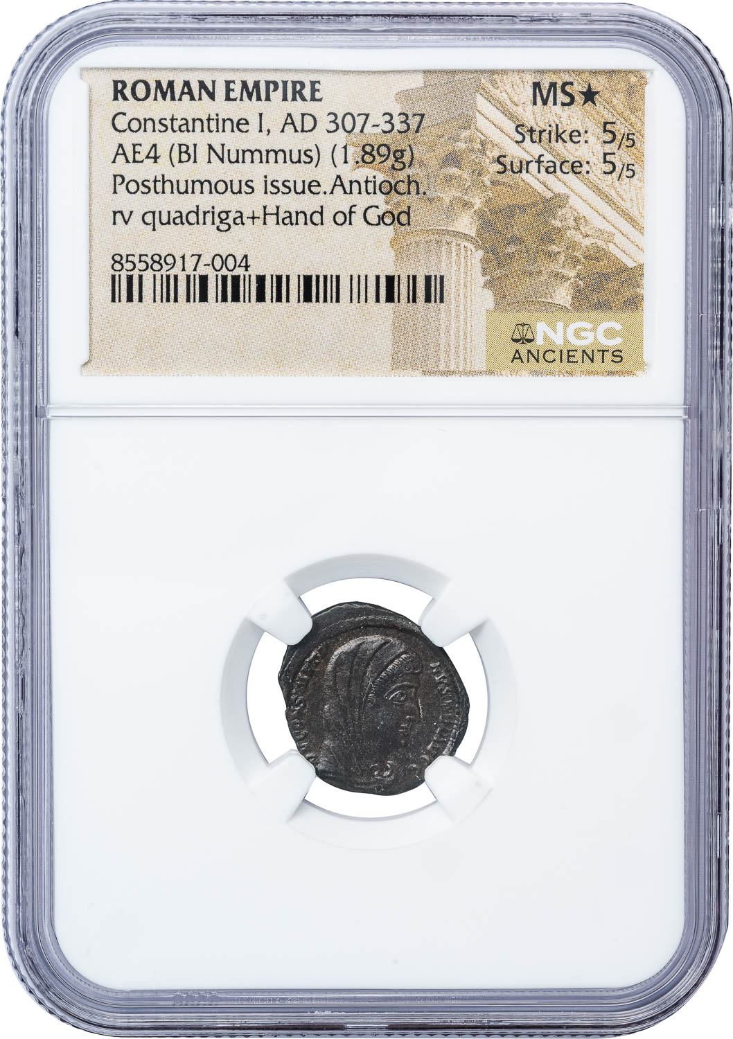 CONSTANTINE I BRONZE AE 15 – ANTIOCH CHRISTIAN APOTHEOSIS ISSUE – SUPERB MINT STATE STAR 5-5 5-5 NGC GRADE ROMAN IMPERIAL COIN (Inv. 20807)