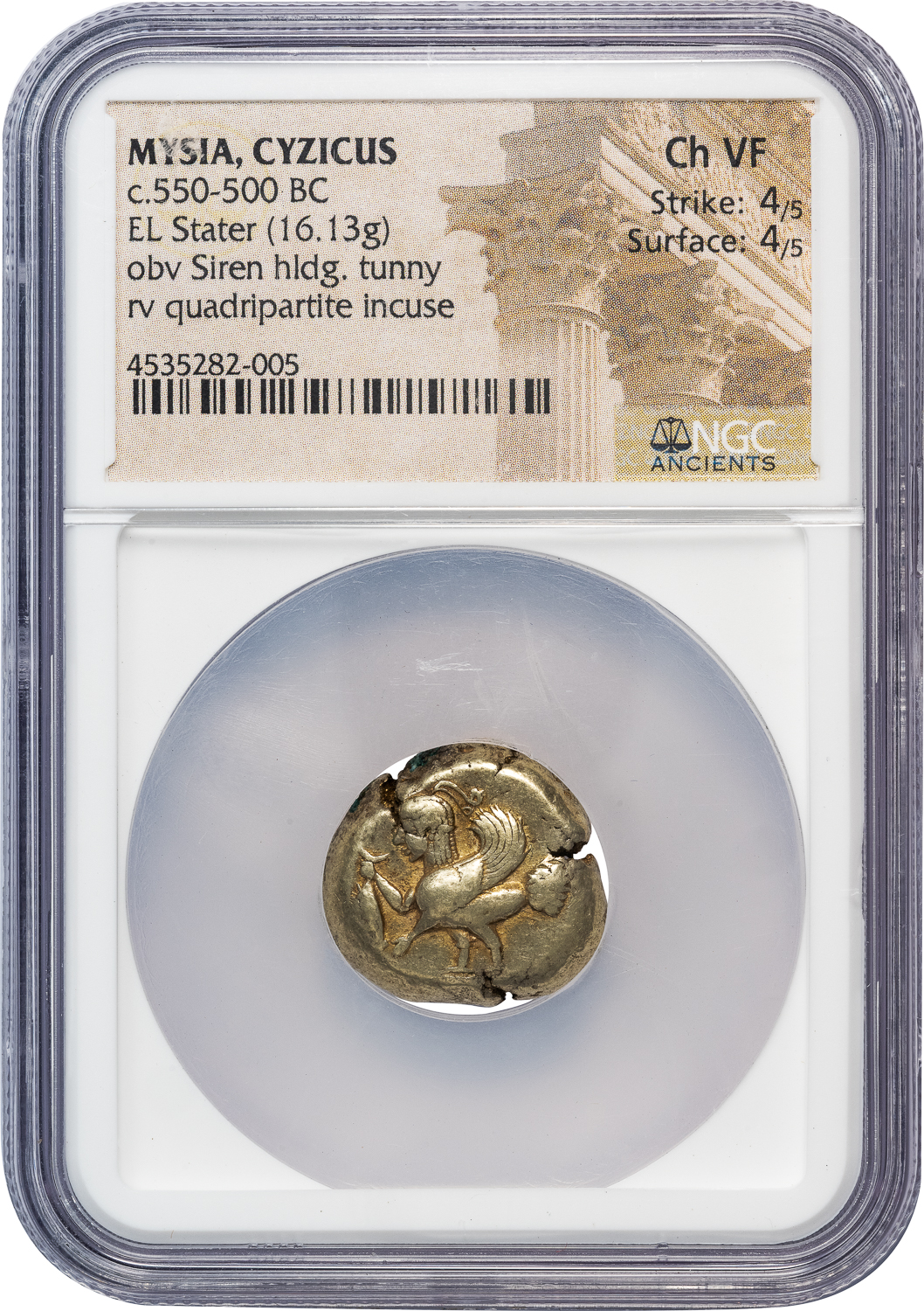 CYZICUS ELECTRUM STATER – SIREN/HARPY ISSUE – CHOICE VF NGC GRADED GREEK MYSIA COIN (Inv. 20831)