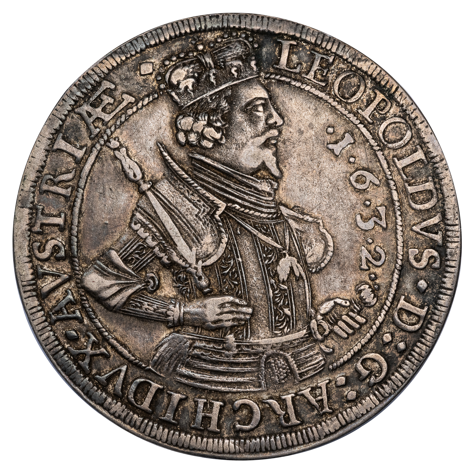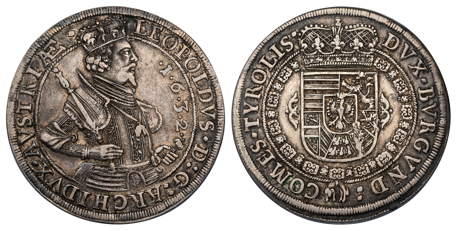 LEOPOLD V SILVER TALER – 1632 HALL MINT ISSUE – XF WORLD AUSTRIA COIN (Inv. 20890)